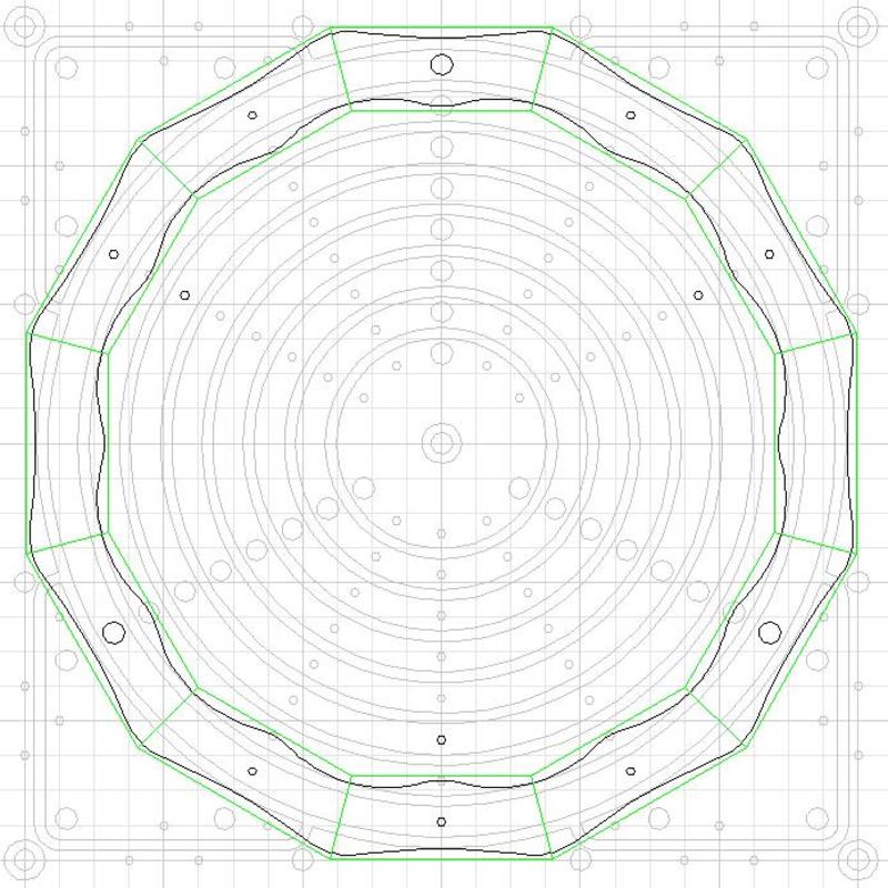 Puzzle (~6") with 13 identical pieces (aperodic monotiles). The defined border makes this experimental puzzle relatively easy. A 100pc (~15") version should be much more challenging. Using CNC router cut tiles for inlays would require 8-24 (6 and 15") slightly different shapes to remove the slight gaps at the 3 and 4-way intersections.[ comment | link | top ]