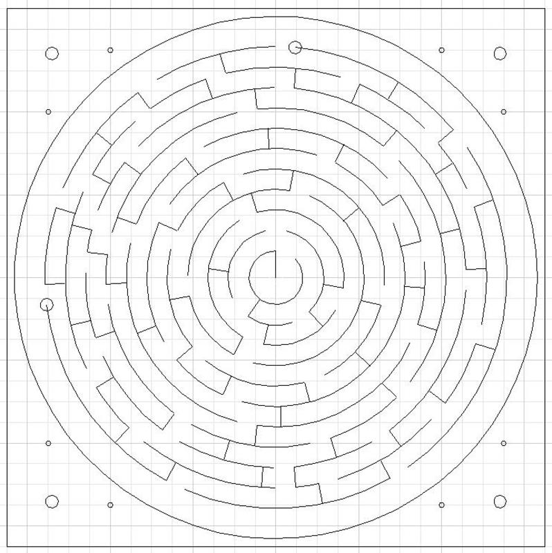 Three layer hardwood and stainless steel rolling ball mazes. The interior Walnut layer is constructed from six plies of A-grade veneer to provide the crispest detail possible. The backside of the top layer has a recess to trap the acrylic face. The outer layers are Baltic Birch on the ~6" maze and 6ply White Oak on the ~3.5" coasters.[ comment | link | top ]
