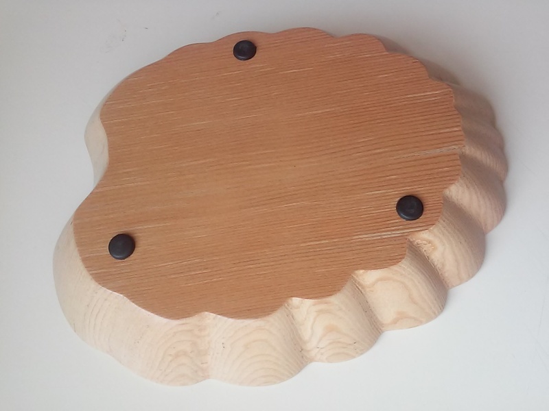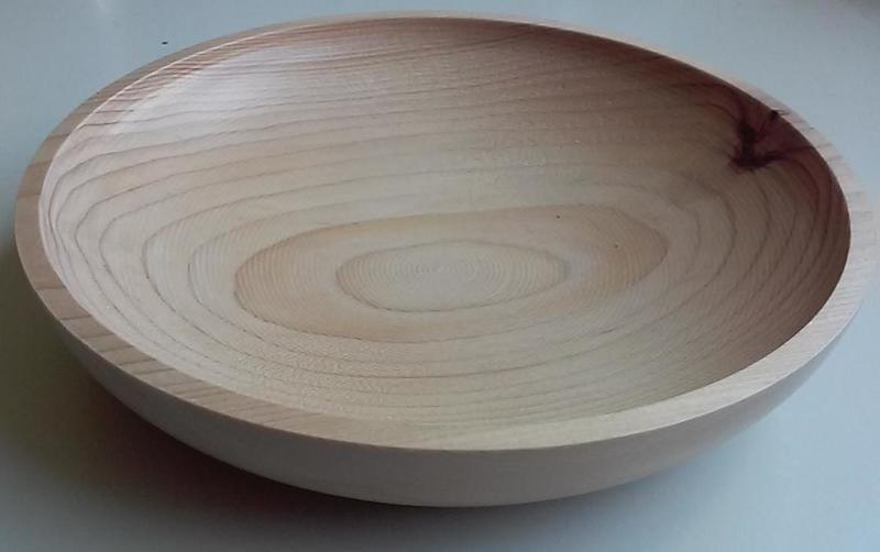 A spiral cut bowl cut into a beveled square base. The bowl and bevel are highlighted with a dye colored WB acrylic finish. Size: ~ 7-1/4 x 1"... The second is a regular smooth cut bowl made from a scrap of Fir 2x8 lumber, size ~7 x 1-3/8.