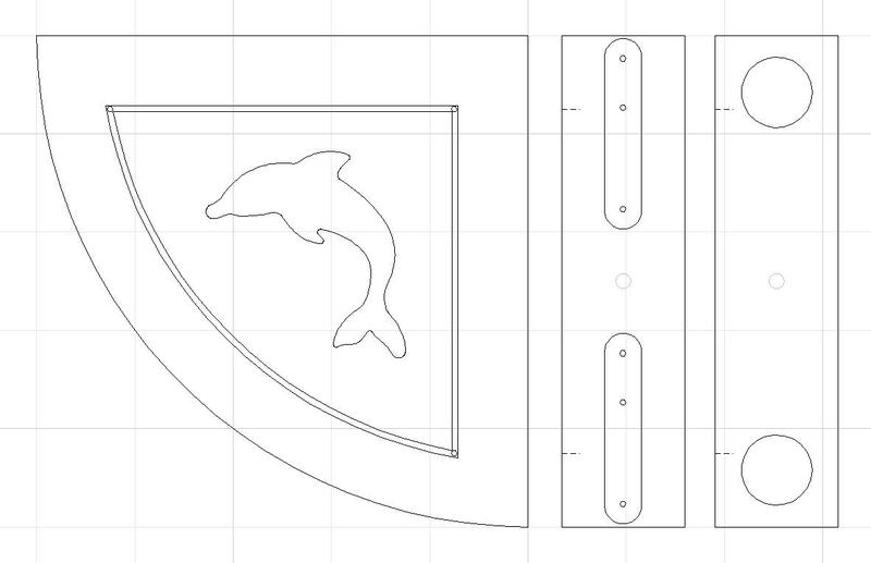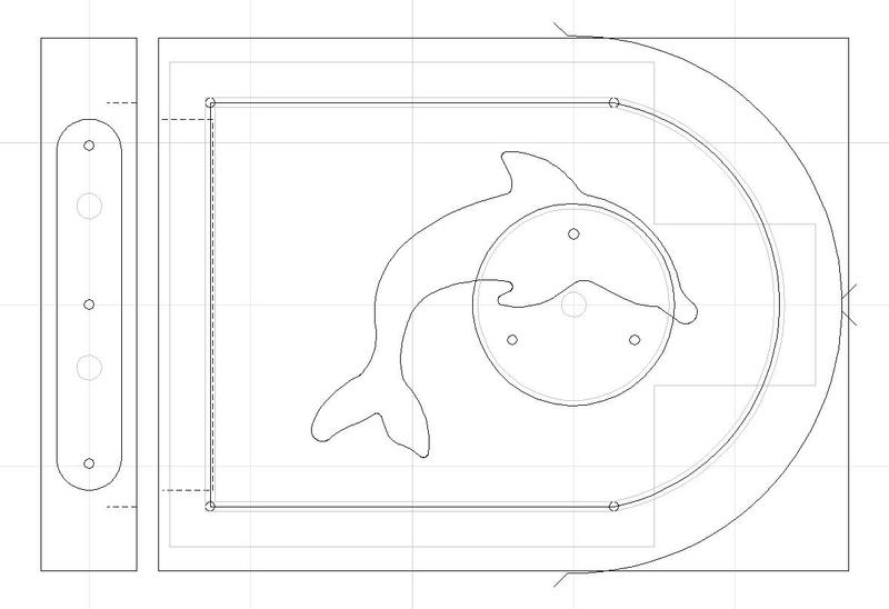 Walnut dolphins for inlays (3ply), earrings (5ply), etc. Inlay example was done as four 94mm coasters. The 80mm dolphins are machined full depth (no tabs) on a vacuum fixture using a 2mm bit.[ comment | link | top ]