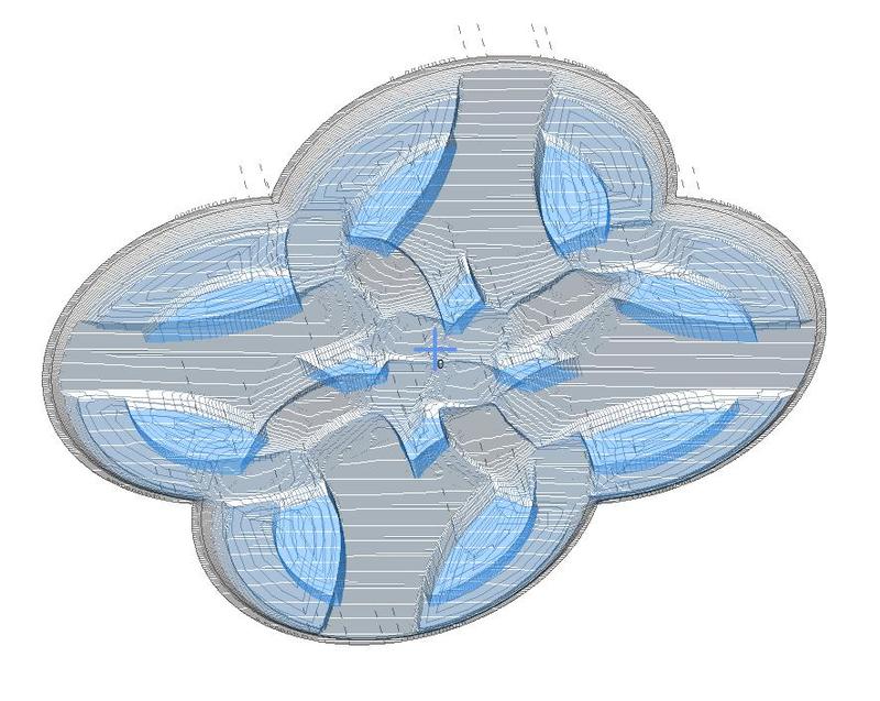 An ~5" nine piece triquetra and interlaced circle (AKA tinity knot) inlay. The fist example is Sapele inlaid in Eucalyptus. The second is Maple and Sapele inlaid in Walnut. The later includes the vacuum fixture used to machine the inlay pieces. All inlays are made with 3 plys of mostly A grade veneer and will mate with pocket perimeters machined with a 2mm bit.