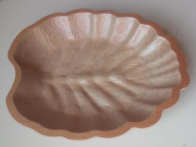 Beech leaf 3D bowl model carved in VG Douglas-fir and finished with WB acrylic. One was customized to accommodate a walnut inlay and feet. Size: ~6 x 5 x 1"[ comment | link | top ]