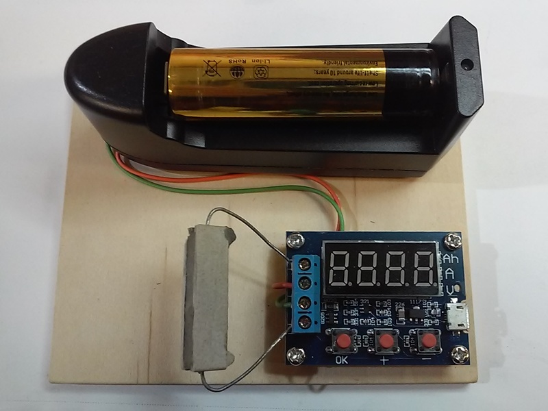 After reading Syonyk's post on the ZB2L3 battery capacity tester, I decided this inexpensive ($3.40 on eBay) 3a maximum discharge tester could tell me what I wanted to know. It is currently mounted to a board along with a cheap charger base (bypassed electronics) so that I can test various cylindrical batteries. The tester seems to be reasonably accurate, but the preponderance of low readings has me thinking I should get at least one brand-name (e.g. Samsung) battery. The following results were done using a 20 ohm resistor* (~.2a load) and a 3.2v cutoff (+/- buttons before OK/start button)... Added a 75 ohm (~.05a load) column and started using a 4.17 start voltage (n*).